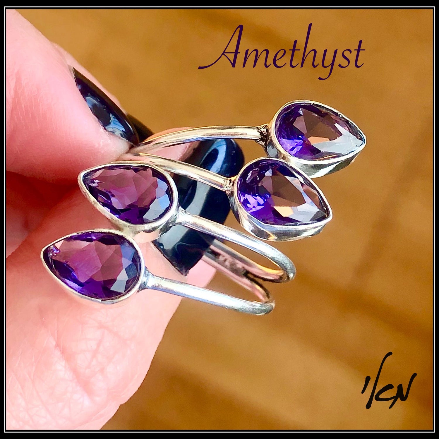 טבעת כסף 925 "טיפות" אבני אמטיסט- Amethyst ring-