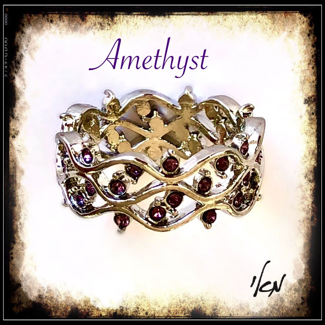 טבעת כסף 925 בשילוב אבני חן אמטיסט