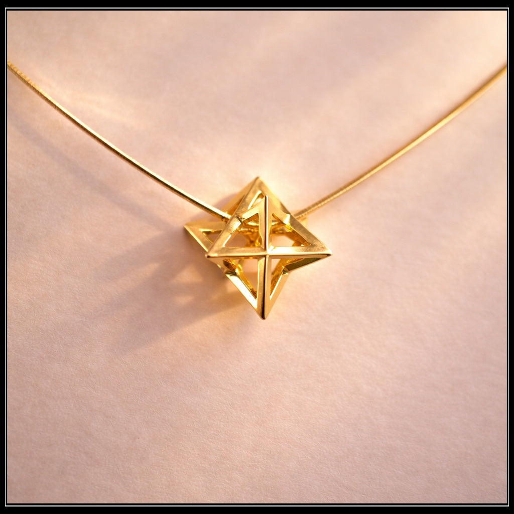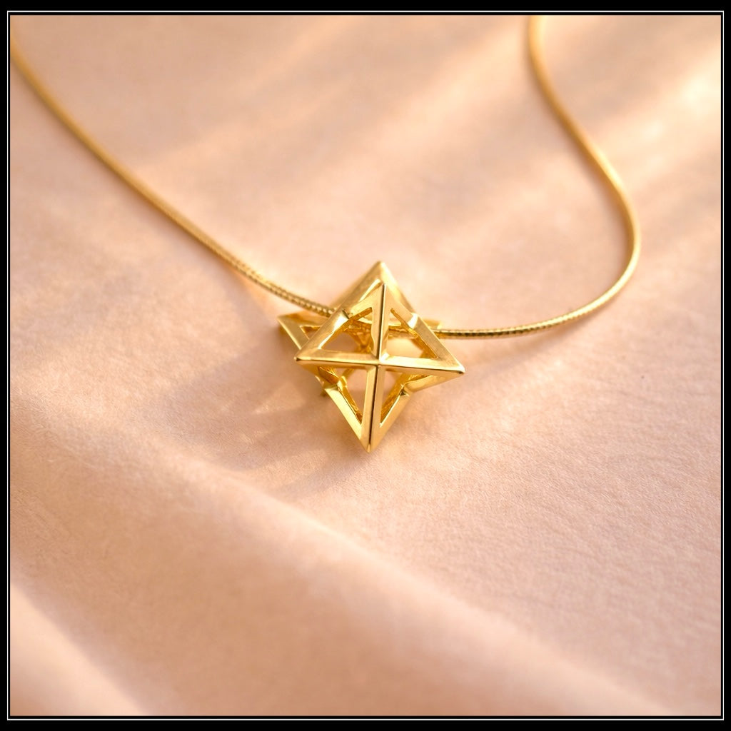 שרשרת מרכבה עדינה ואלגנטית, עשויה בעיצוב תלת־ממדי מדויק של צורת המרכבה, אחד הסמלים העוצמתיים ביותר בגאומטריה המקודשת.