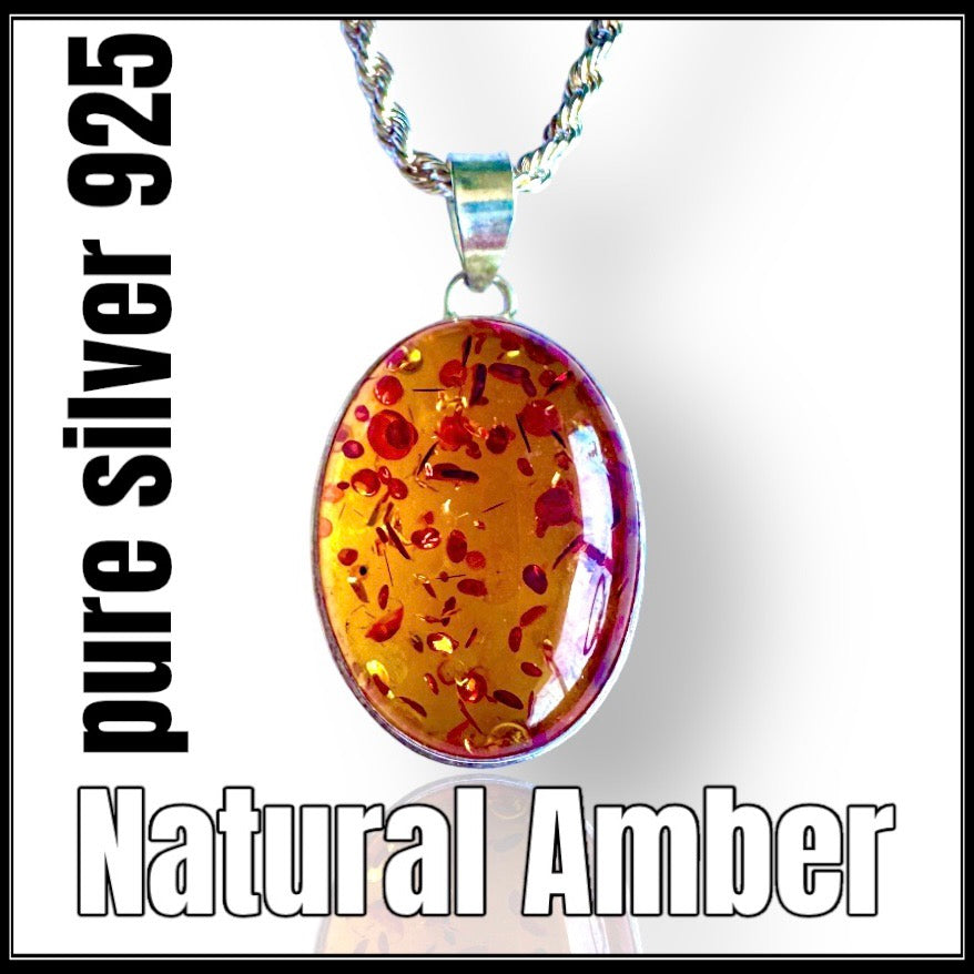 תליון כסף טהור אבן ענבר ושרשרת כסף 925 מדהימה