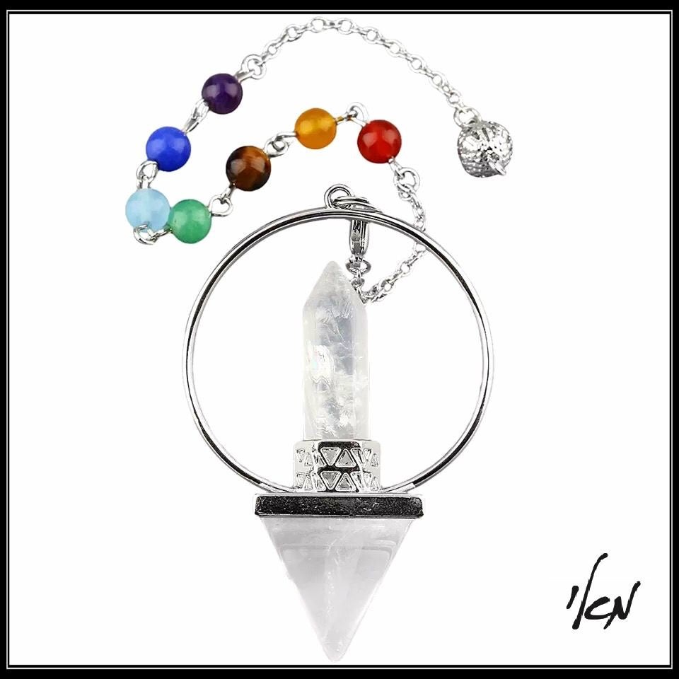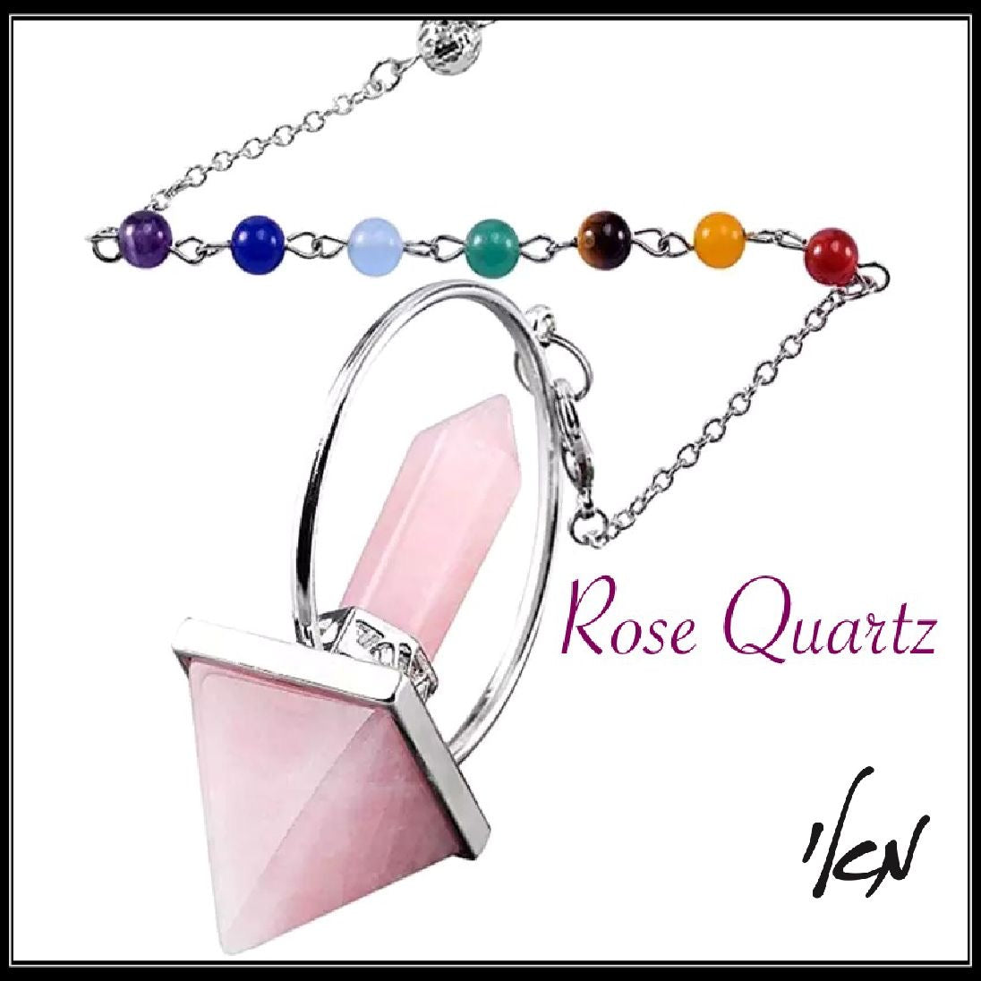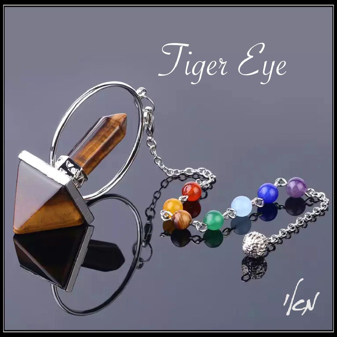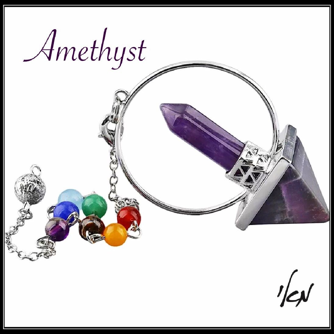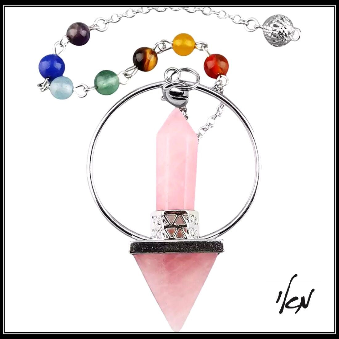 מטוטלת 7 צ׳אקרות - מטוטלת תקשור מאבני חן טבעיות – אמטיסט, טייגר איי, קוורץ ורוד ולבן