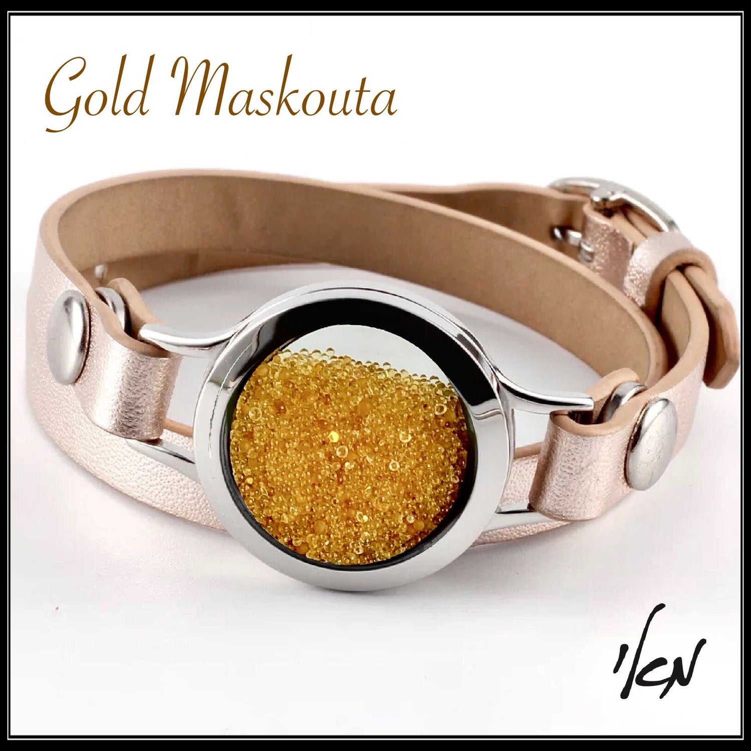 צמיד עור אמיתי עם מסקוטה זהב הקסומה – תכשיט עוצמתי המשלב בין יוקרה לאנרגיה רוחנית, קמע קבלי אמיתי המחובר לתדר השפע והשגשוג.