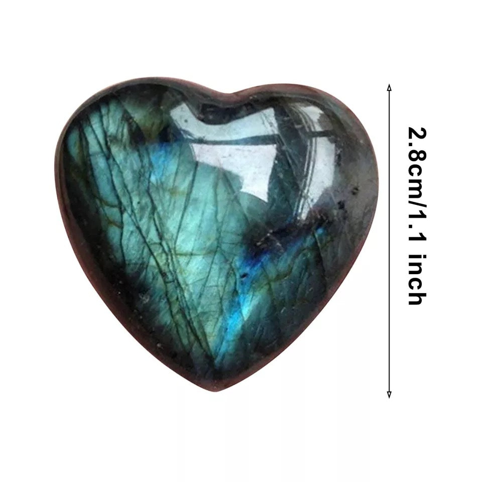 💎 האבן בצורת לב – סמל האהבה והאנרגיה הרגשית – מגבירה עוד יותר את כוחה של הלברדורייט ומחברת ישירות לאינטואיציה וללב הפנימי שלנו.