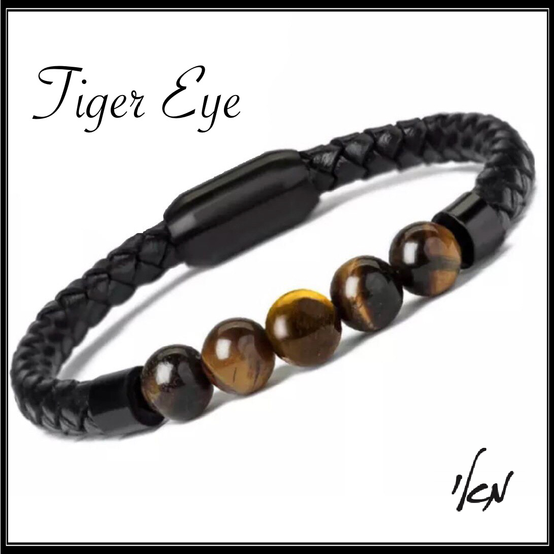 צמיד אנרגטי עוצמתי המשלב עור איכותי עם אבן חן טייגר איי טבעית.