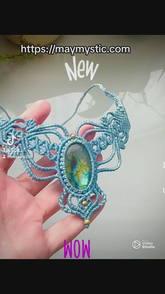 שרשרת מקרמה - עבודת יד- אבן חן לברדורייט - דגם ייחודי, יחידה אחת