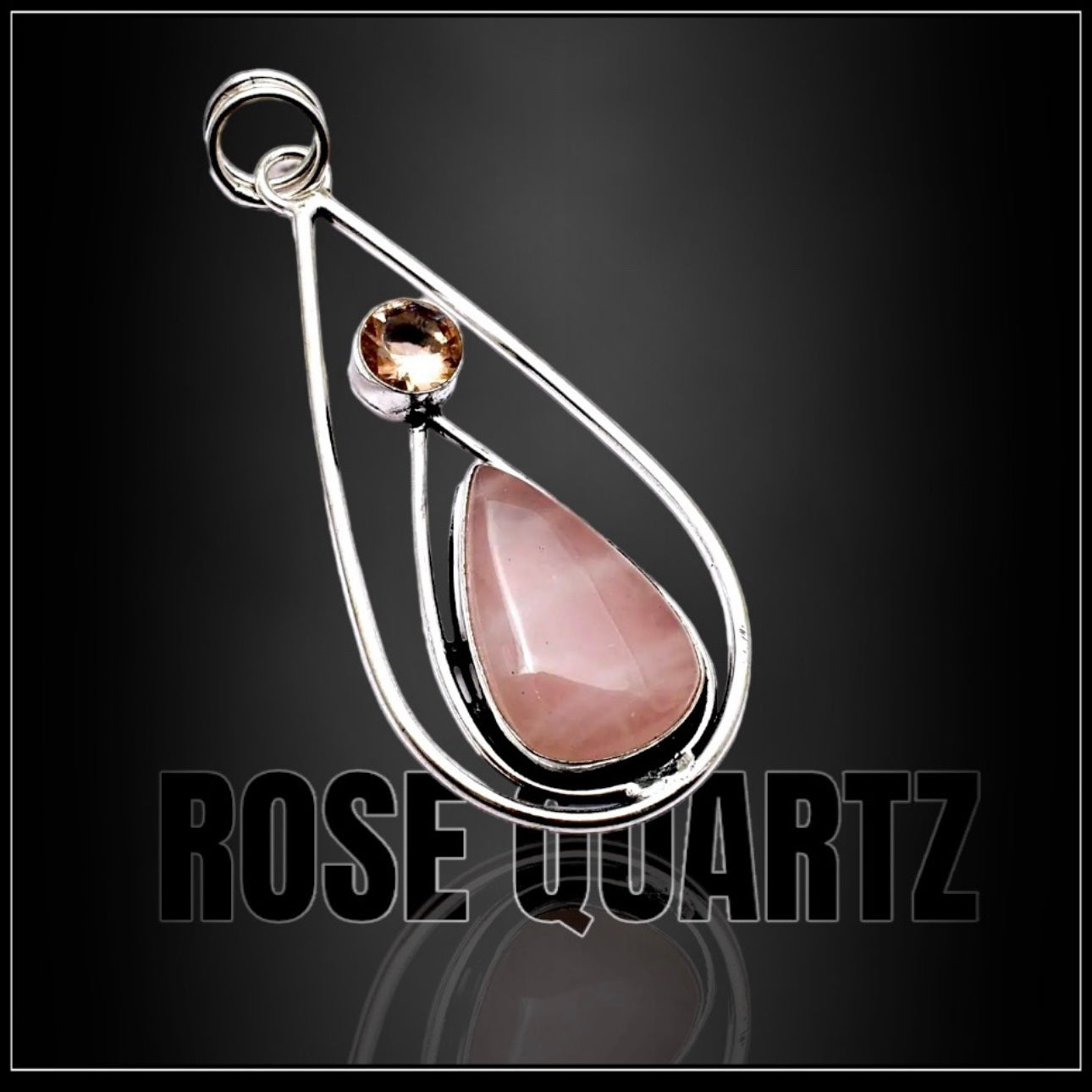 תליון מכסף טהור עם אבן רוז קוורץ ומורגונייט מדהימה, בעיצוב ייחודי בעבודת יד ,