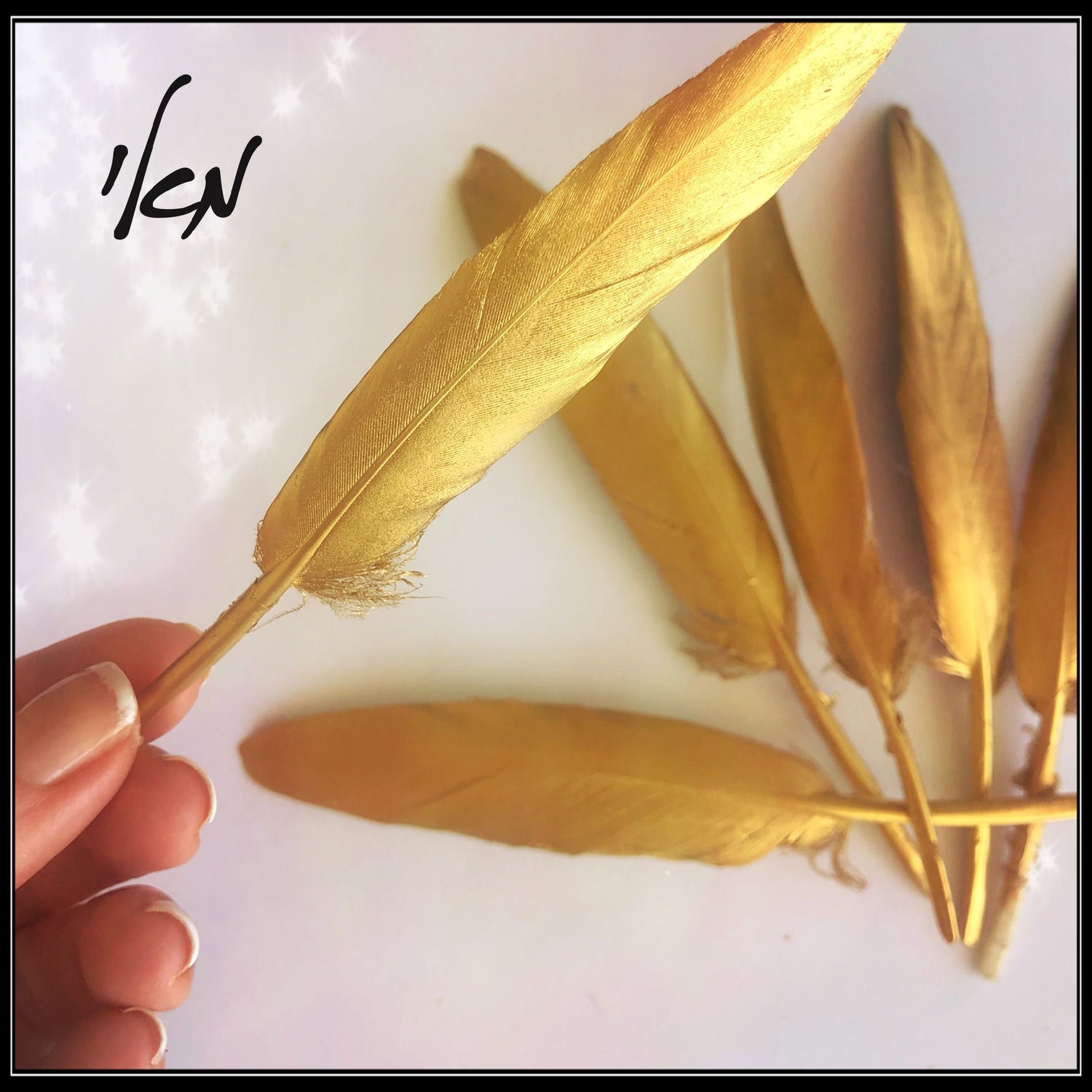 נוצה מקודשת צבע זהב – סמל רוחני לחיבור עם מלאכים והיקום
