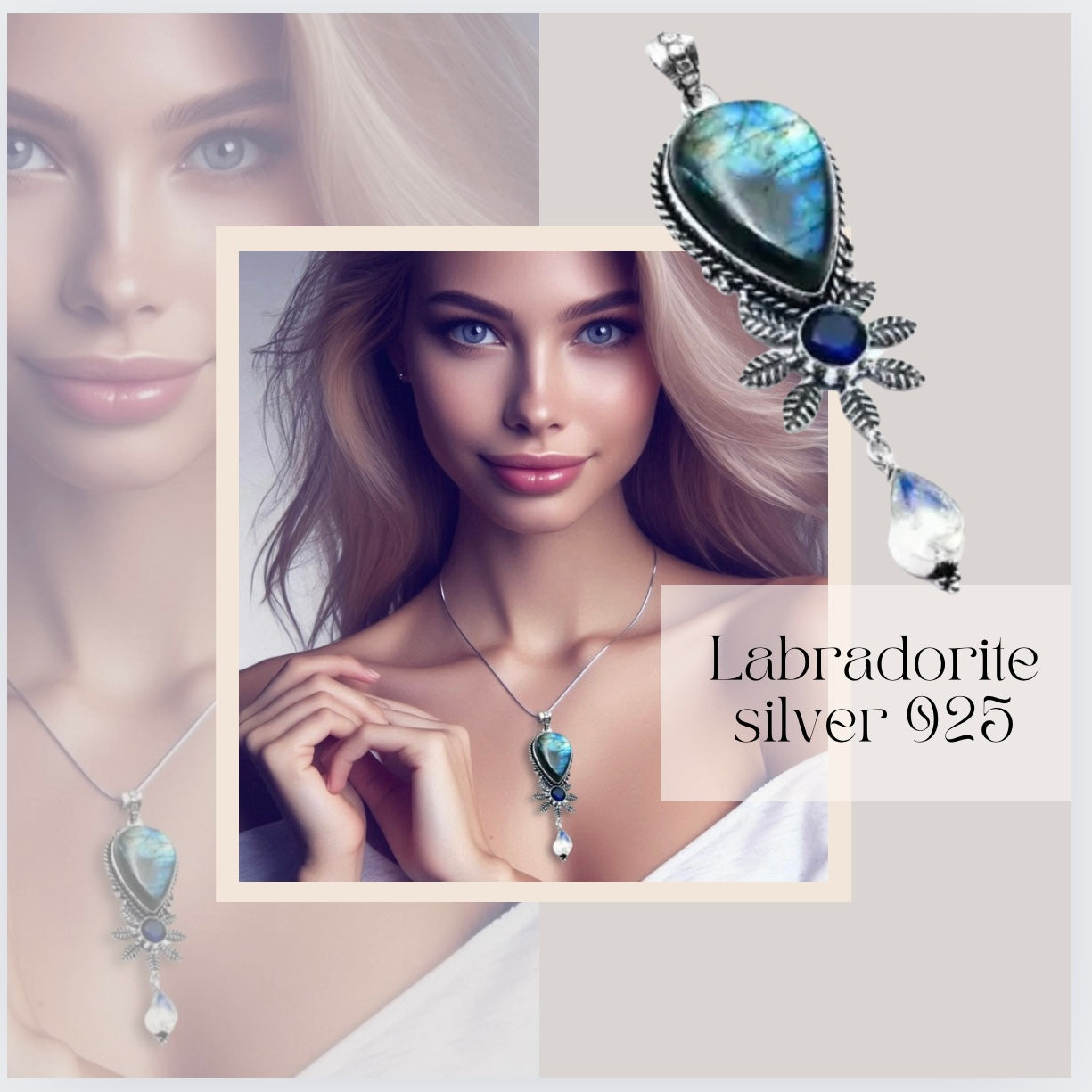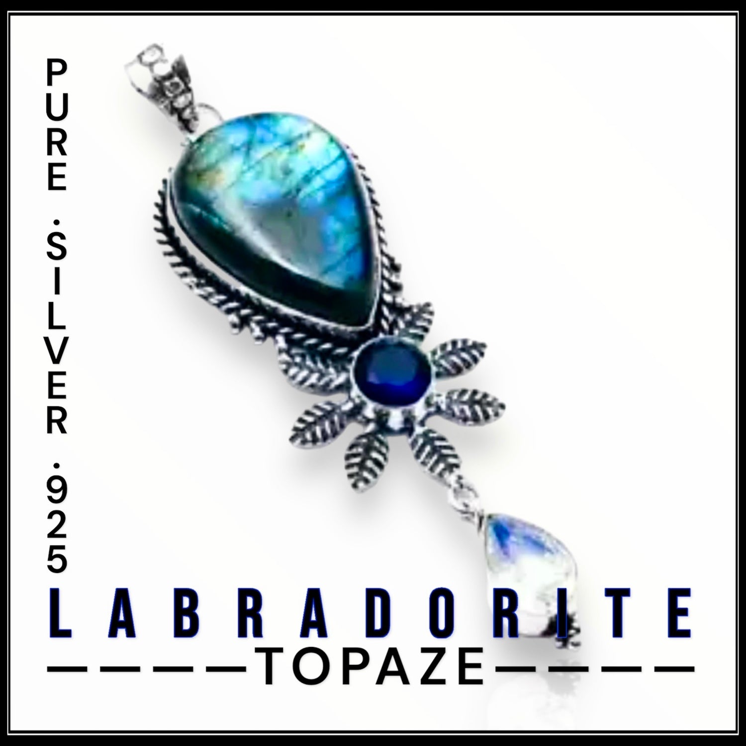 תליון כסף 925 אבן לברדורייט אבן מון סטון וטופז כחול