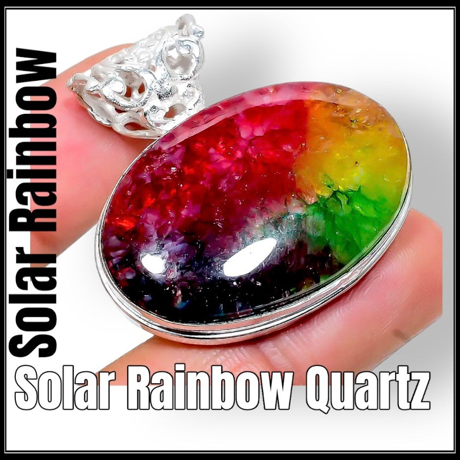 יצירת מופת בעבודת יד מכסף אמיתי 925 המשלבת את האבן הקסומה Solar Rainbow Quartz