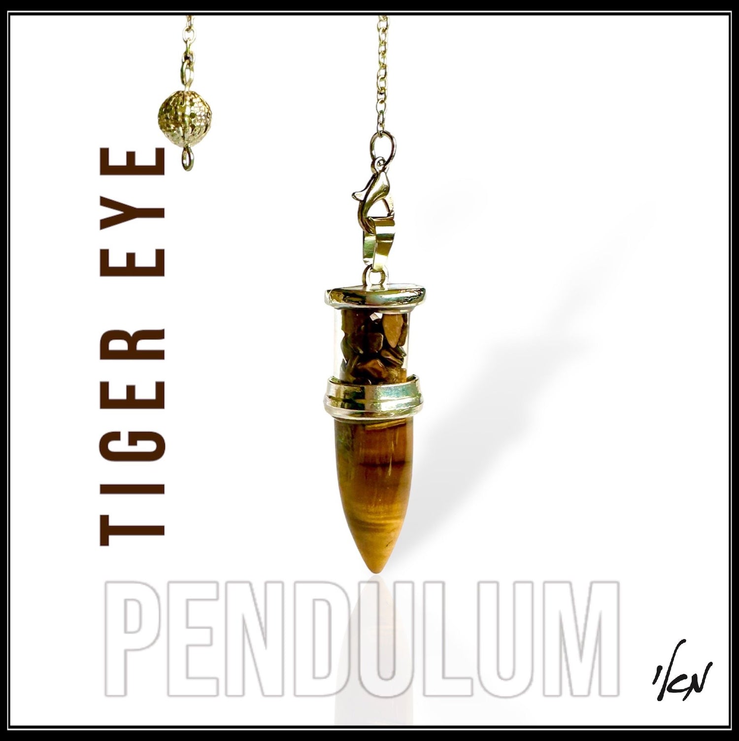 מטוטלת זו עשויה מאבן טייגר איי טבעי, אבן חן הידועה ביכולותיה להעניק תחושת ביטחון, חיזוק ההגנה האנרגטית והעמקת האינטואיציה.